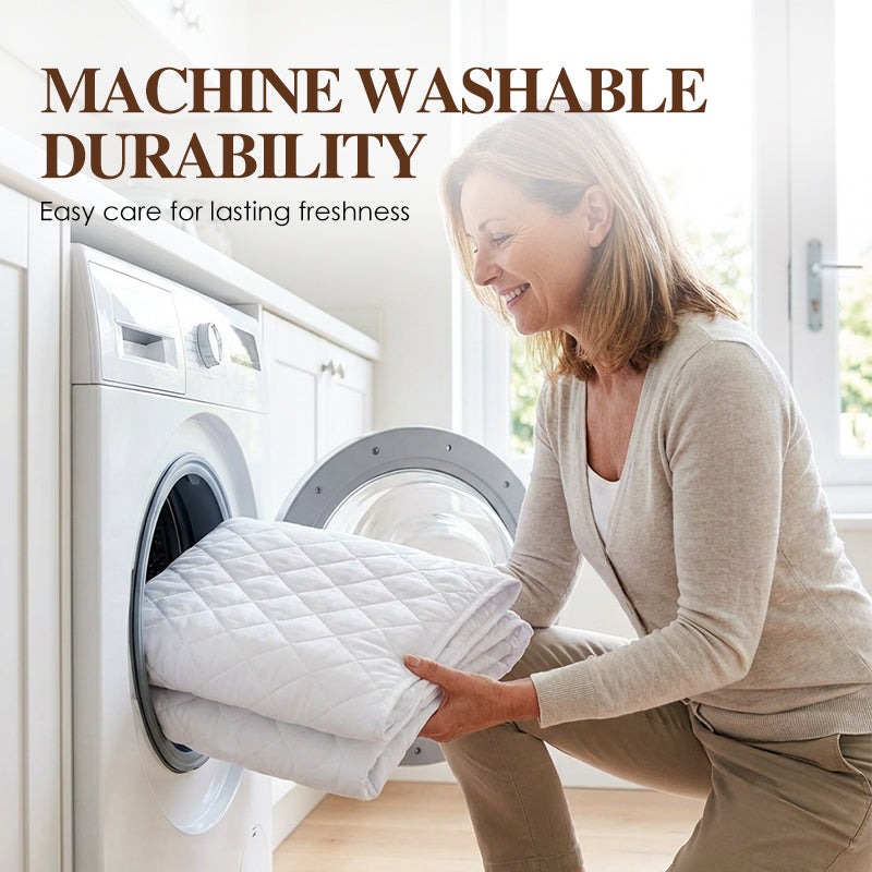 SECURE FITTED DESIGN - Finns med djupa fickor och en stark elastisk kjol som omsluter madrassen tätt. Detta säkerställer att skyddet sitter fast på plats utan att glida, och erbjuder en konstant jämn och bekväm yta.